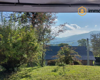 Le terrain mesure 2100m2, en partie en pente, mais intégralement constructible. La partie haute du jardin dispose d’une vue impressionante.