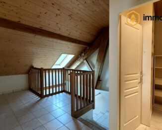 La seconde maison est mitoyenne de la première, orienté nord/sud, compltement rénovée en 2004 également développe sur 108m2 habitables environ (2 niveaux) une belle pièce de vie, une cuisine indépendante, trois chambres, deux salles d’eaun 2 wc et une grand grenier de 72m2 facile à aménager. La pièce de vie est ouverte en rez sur un petit jardin. Cette partie est louée actuellement (bail se terminant en mai 2027 pour un loyer de 850€ mensuels). Elle est chauffée par une résistance électrique au sol du rez et des radiateurs électriques à l’étage, complété par un poele à bois.