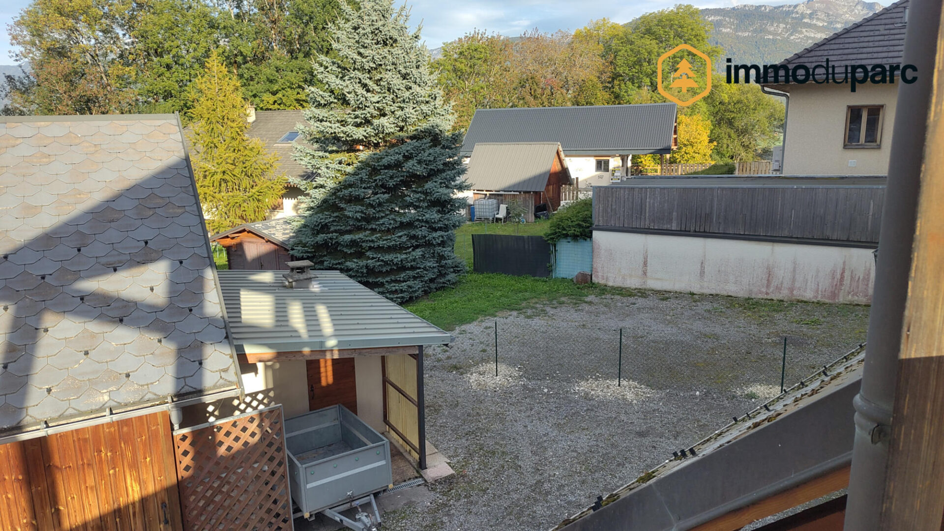 Le terrain mesure dans l’ensemble 1200m2, completement plat, arboré avec de nombreux stationnements.